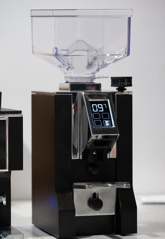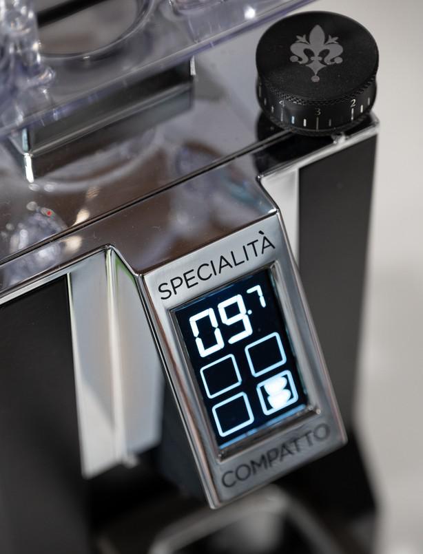 Leises Mahlen ist mit der Eureka Mignon Specialita Compatto 16CR schwarz garantiert und das neue Modell von Eureka ist absolut einzigartig in dieser Kategorie! Selbstverständlich ist der Mahlgrad dieser Mühle stufenlos einstellbar. Und durch die universelle Haltevorrichtung für den Siebträger ist ein „Hands-Free“ Mahlen garantiert. Desweiteren verfügt die Mühle über 2 Timer als Dosiermöglichtkeit sowie einem manuellen Modus. Das heisst, die Dosierung kann entweder manuell vorgenommen werden oder über einen Timer programmiert werden. Desweiteren bietet der Timer die Möglichkeit, zu unterbrechen bzw. pausieren. Das Display zeigt die verbleibende Restlaufzeit in Sekunden an. Durch nochmaliges Drücken auf den Bezugsknopf wird der Mahlgang fortgesetzt und die Mühle mahlt automatisch die restliche Zeit fertig. Die Einstellungmöglichkeiten am Display gelingen auf sehr einfache Art und Weise via Touch Screen, was für eine einfache und angenehme Usability sorgt.